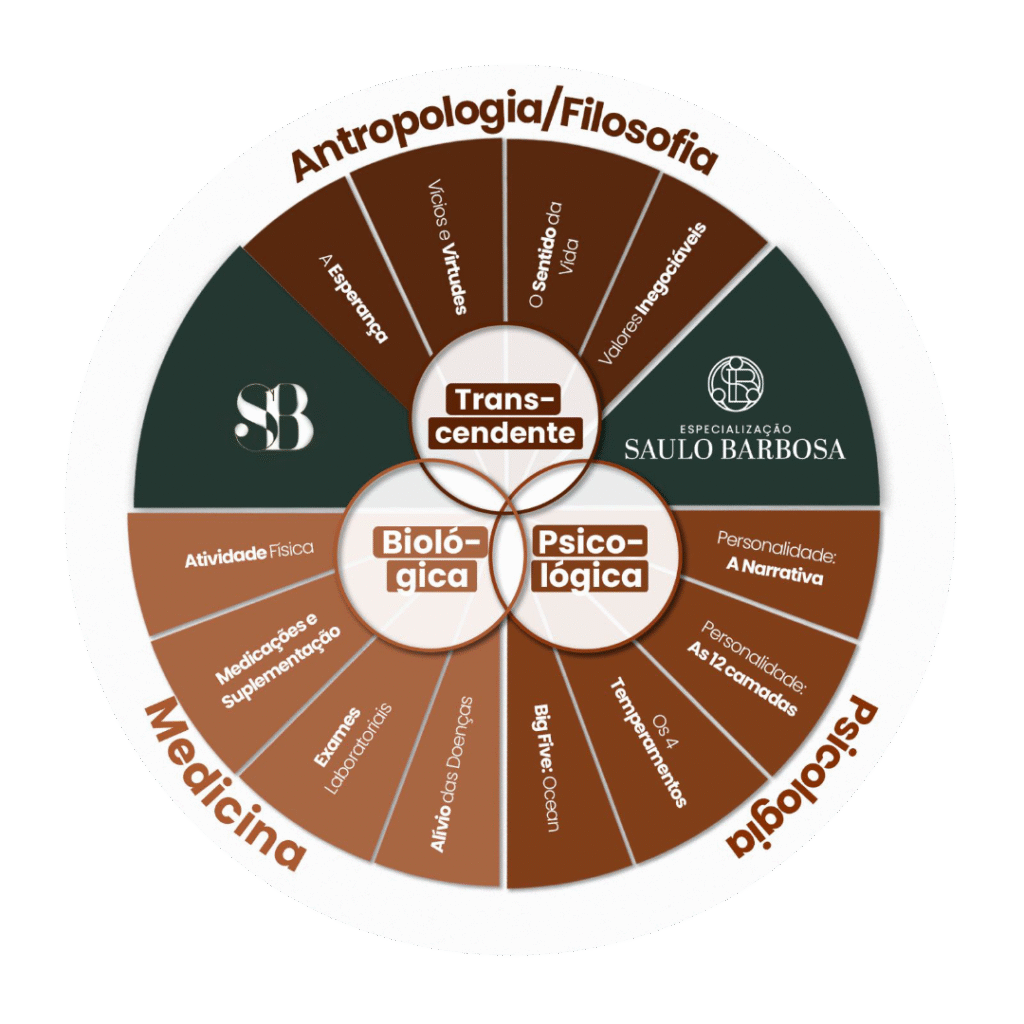 Aqui, você vai compreender o ser humano em sua totalidade, através de três pilares indispensáveis: Biológico, Psicológico e Transcendente.